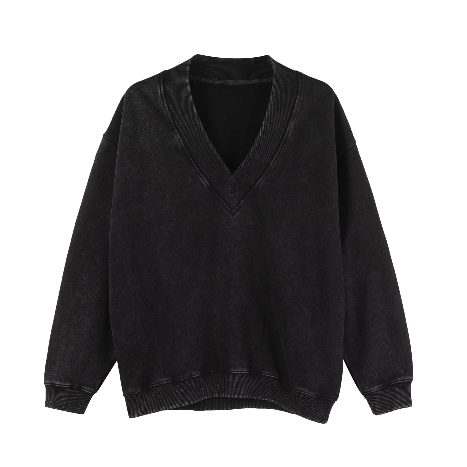 柔らかな国産コットン生地にウォッシュ加工をかけエイジング感を引き立てたVネックスウェット。
