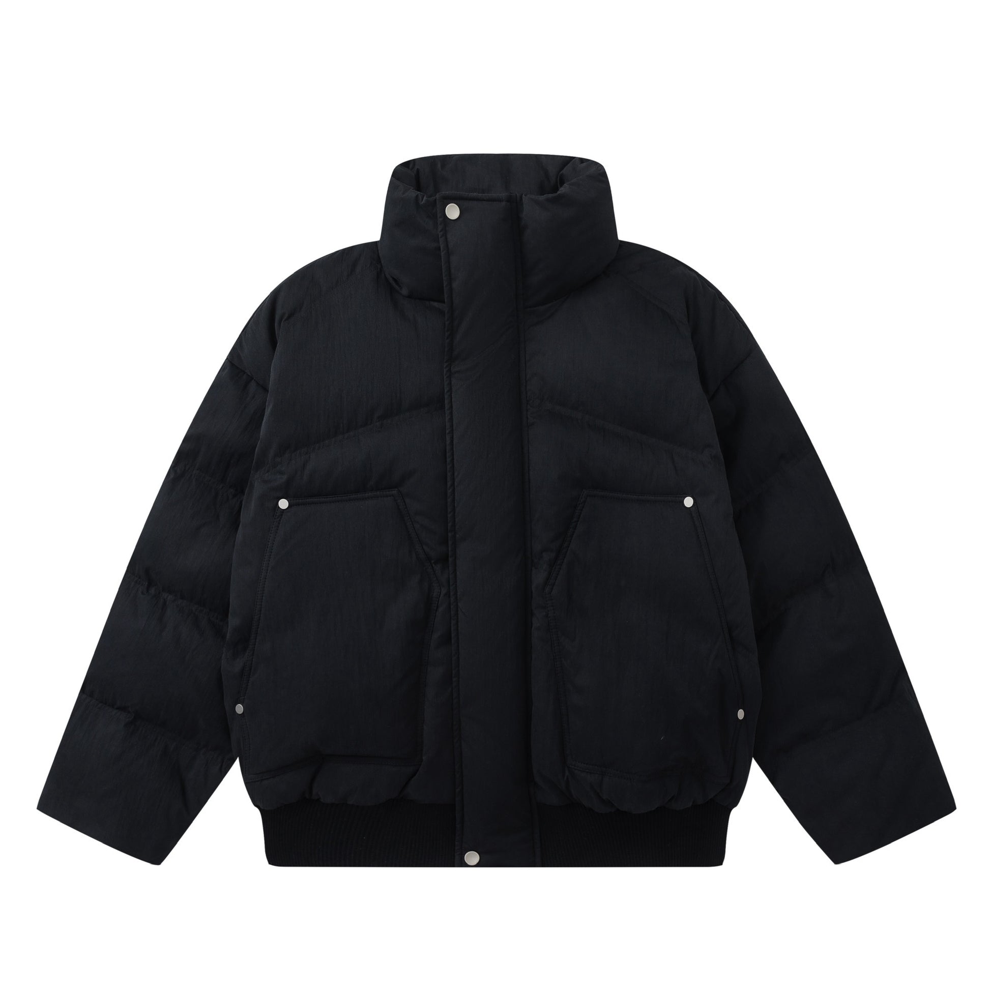 洗練されたマットな生地感を厳選した、アウトポケットのデザインが特徴的なダウンジャケット。