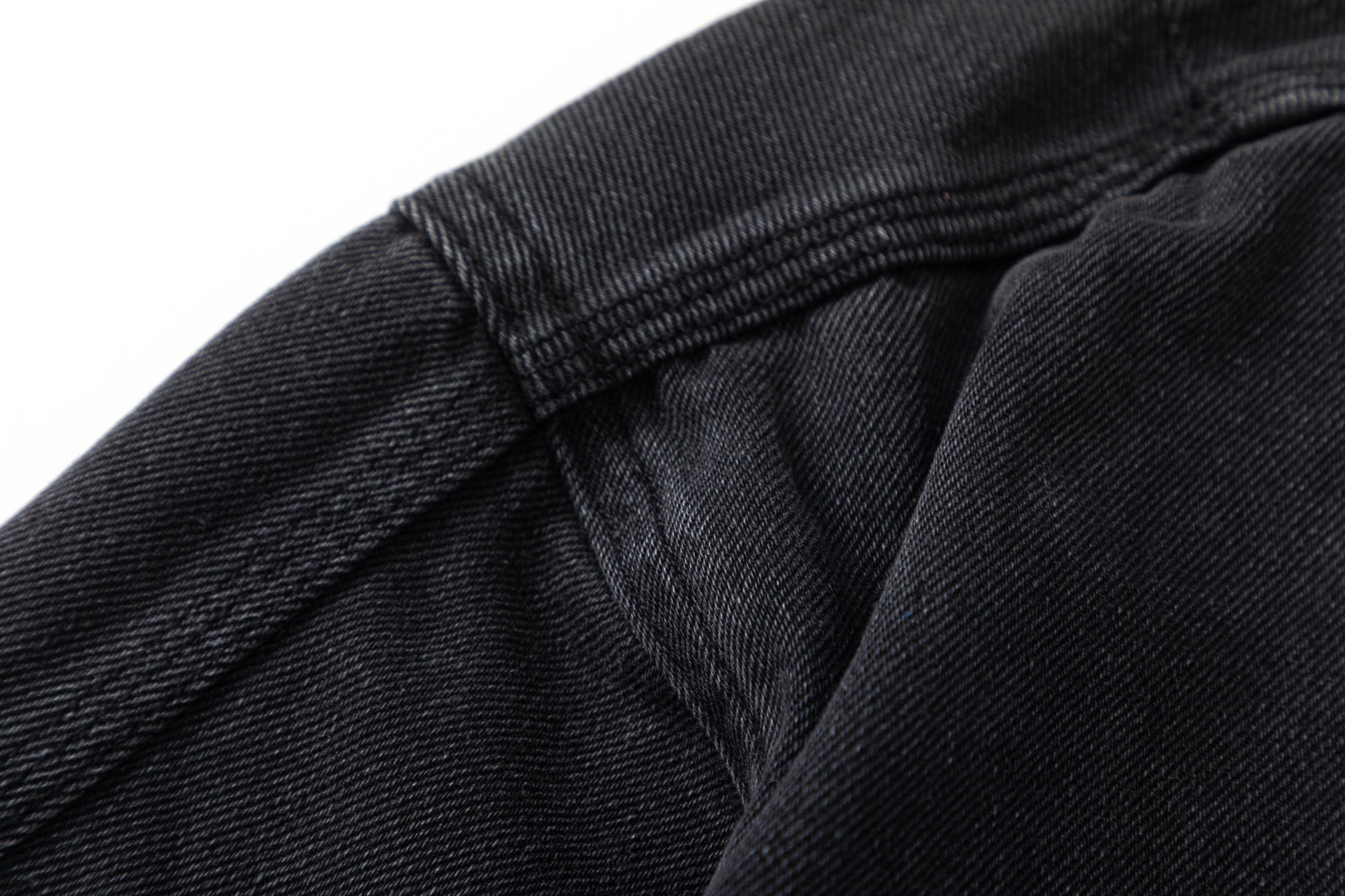 ブラックデニムにウォッシュ加工を施すことにより襟端や袖口、縫い目に生まれる色褪せがヴィンテージライクな雰囲気を漂わせます。カジュアルアイテムのデニムジャケットながら、務歯の見えないフロントファスナーの仕様や両サイドの玉縁ポケットなどクリーンな印象を与えるディテールを採用しておりスタイルを選ばずに着用できる1着。