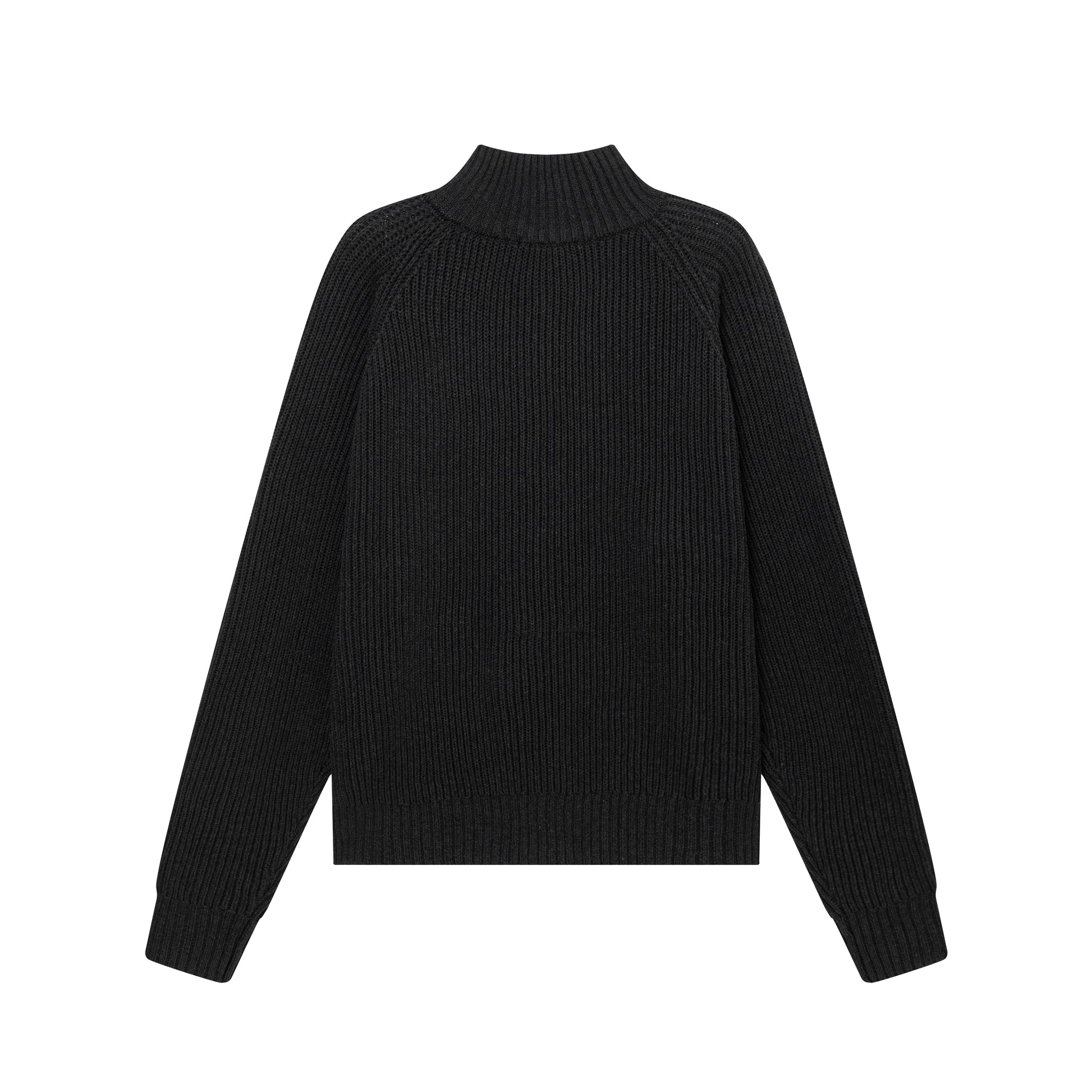コットン100%の為、化学繊維と比べ肌への刺激やストレスもなく着用できるラグランスリーブのハイネックニットです。