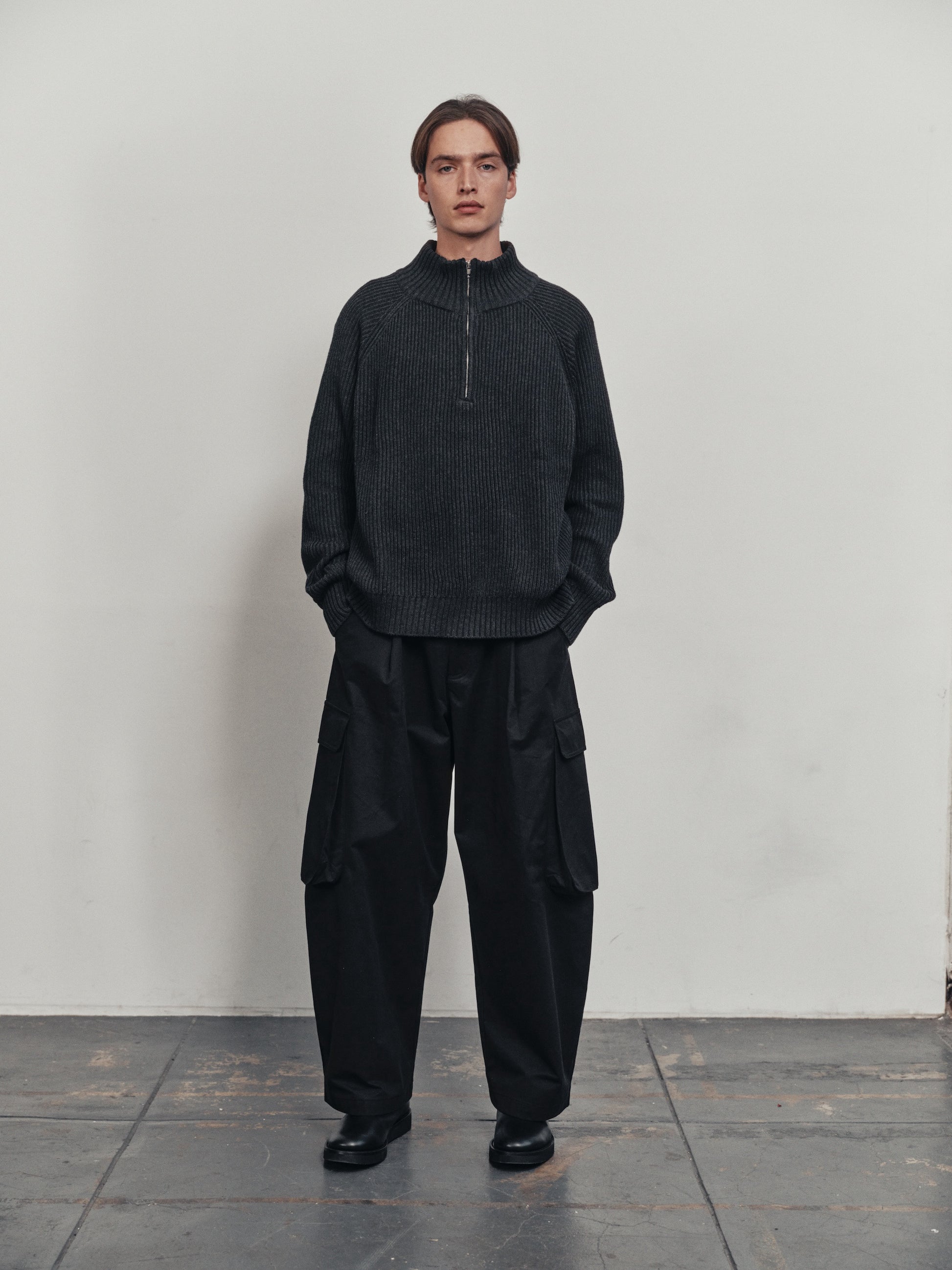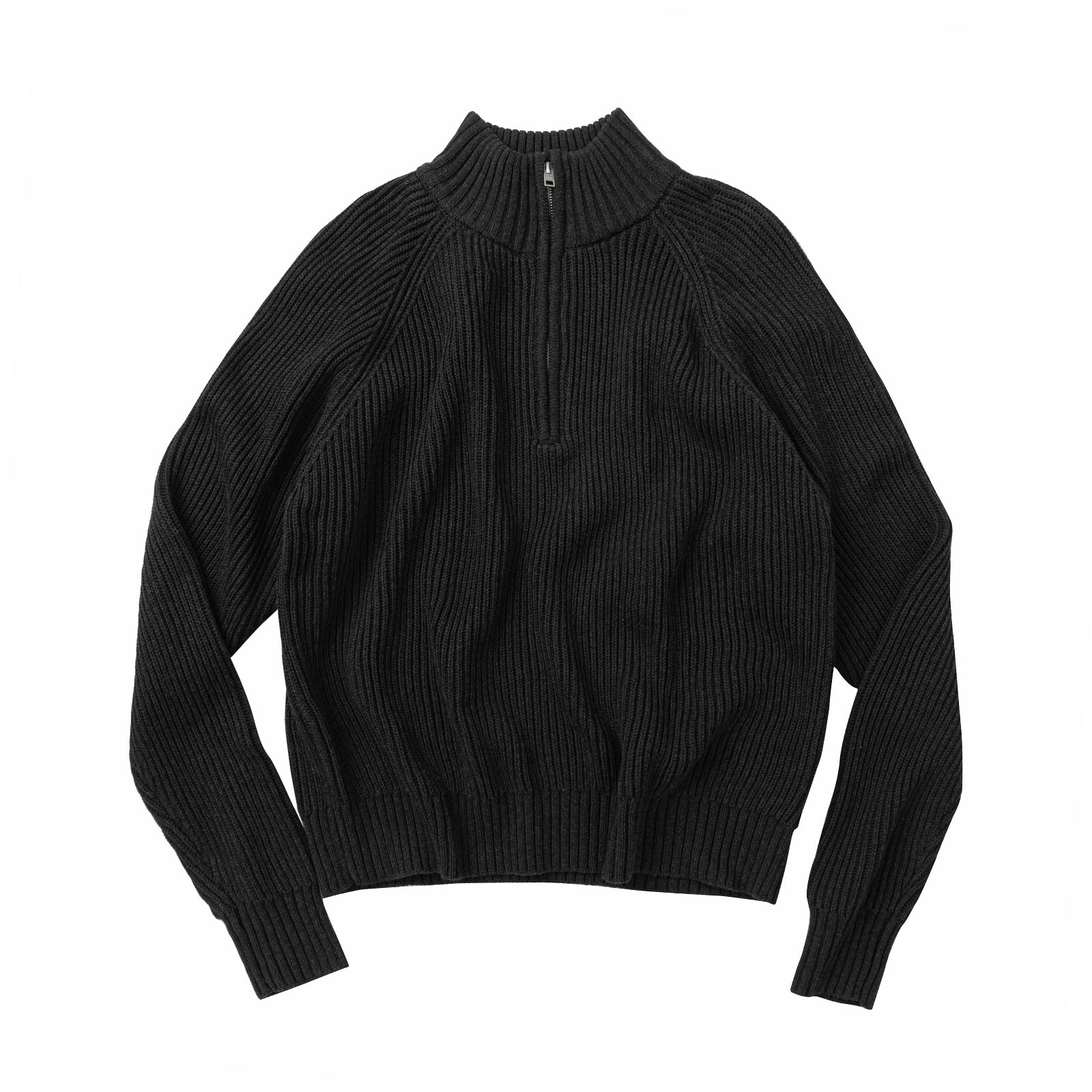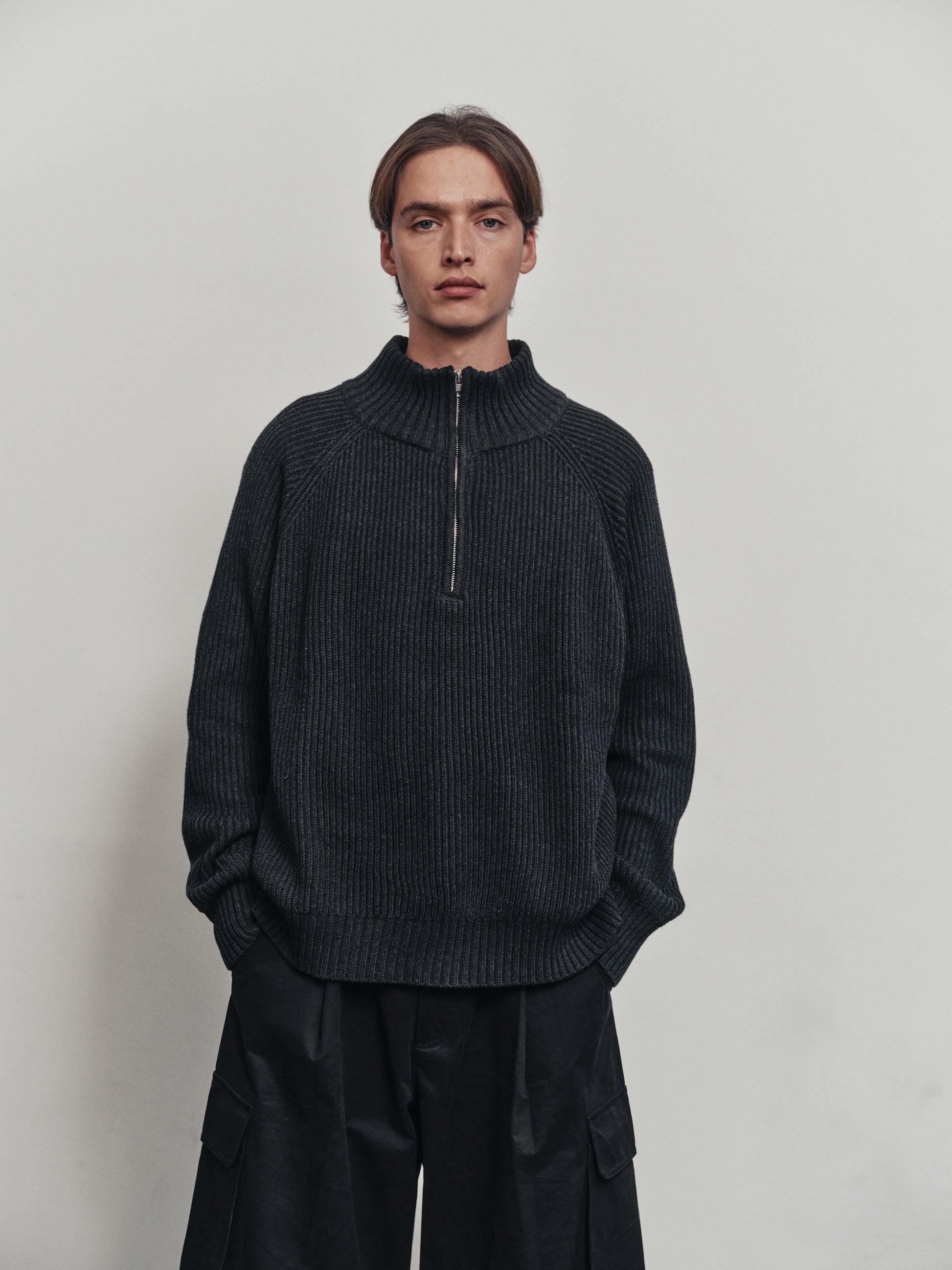 上質な国産コットンを使用して柔らかく編み上げた肌触りの良いハーフジップニット。