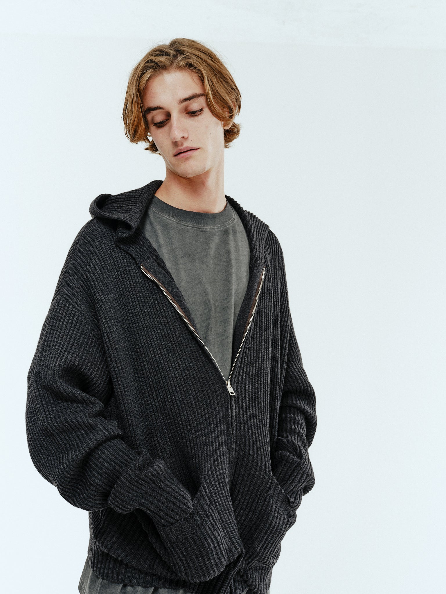 上質な国産コットンを使用して柔らかく編み上げた、リブデザインが特徴的なジップアップニットパーカーです。