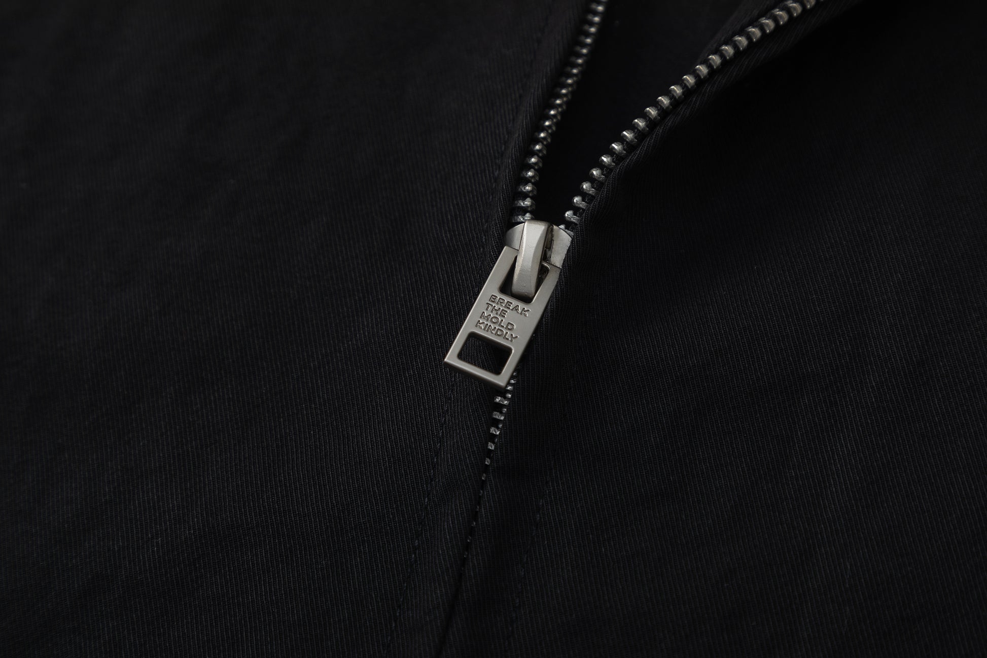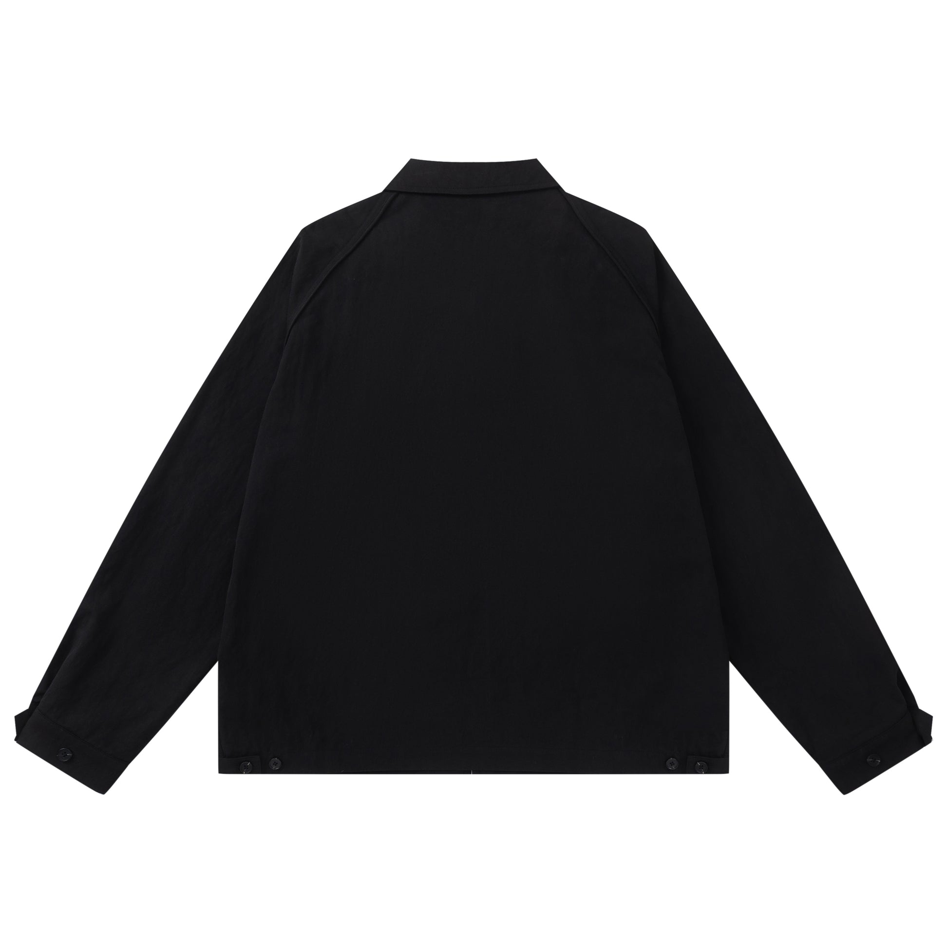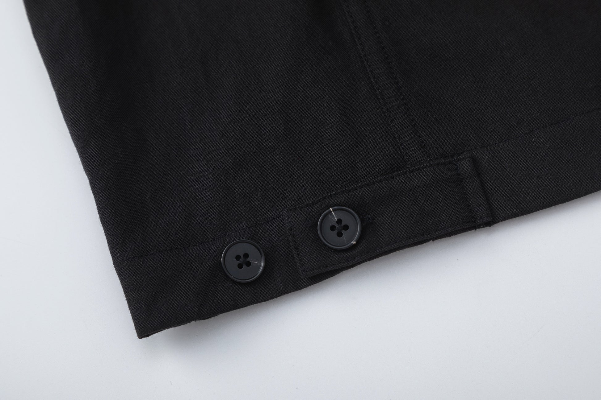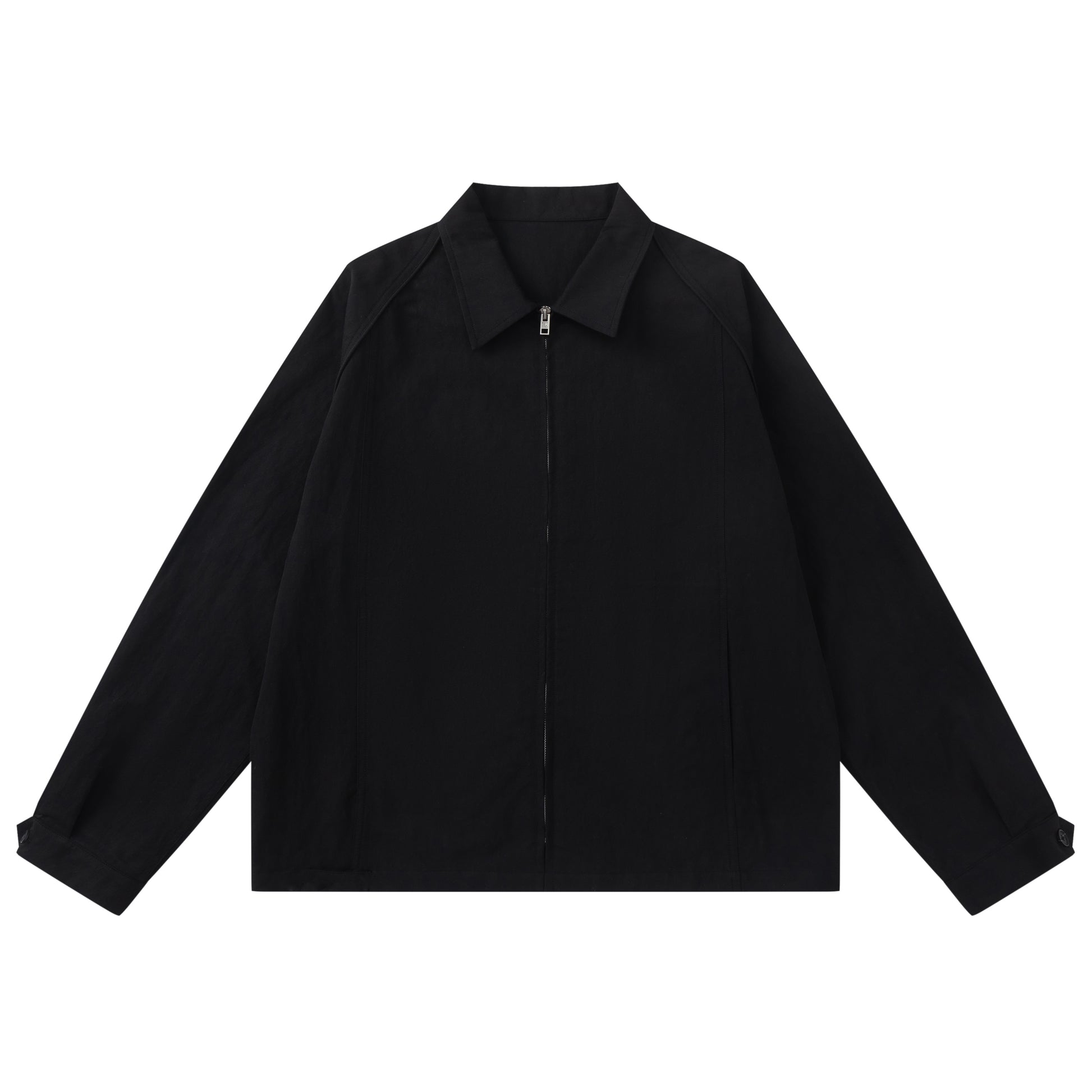 ラグランスリーブの縫い目に配したパイピングコードやフロントのシームポケット等、黒で統一したディテールによりミニマルでクリーンな印象に仕上げました。