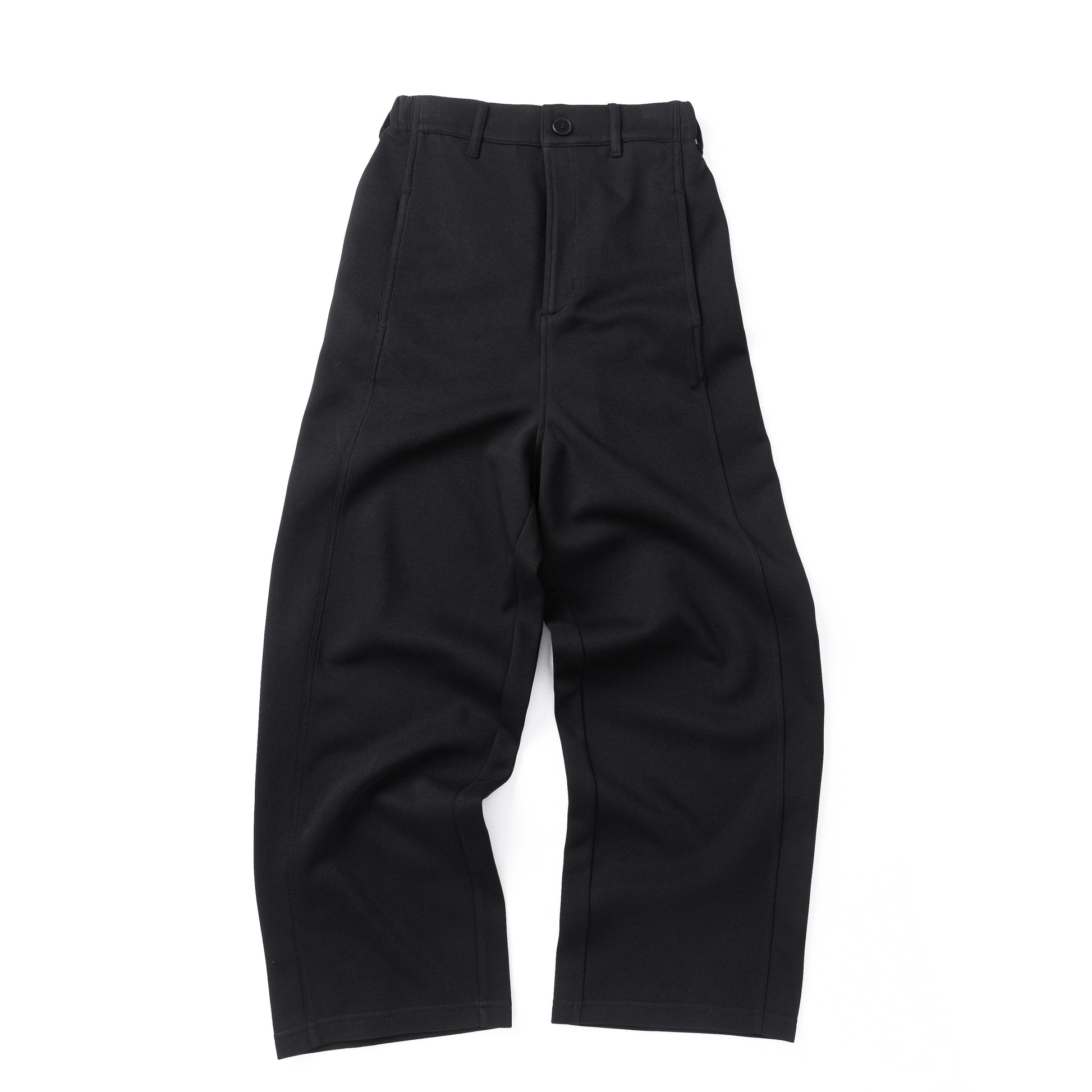 柔らかくハリがあるコットン生地を使用した、スラックスの様なシルエットのワイドストレートパンツ。