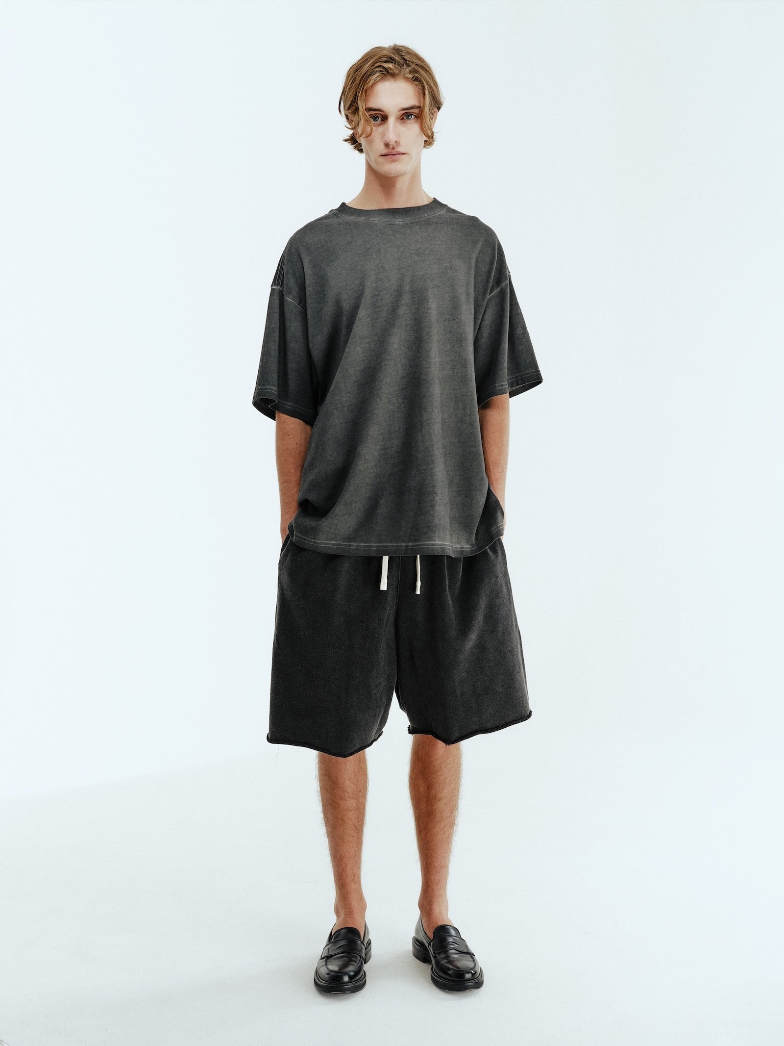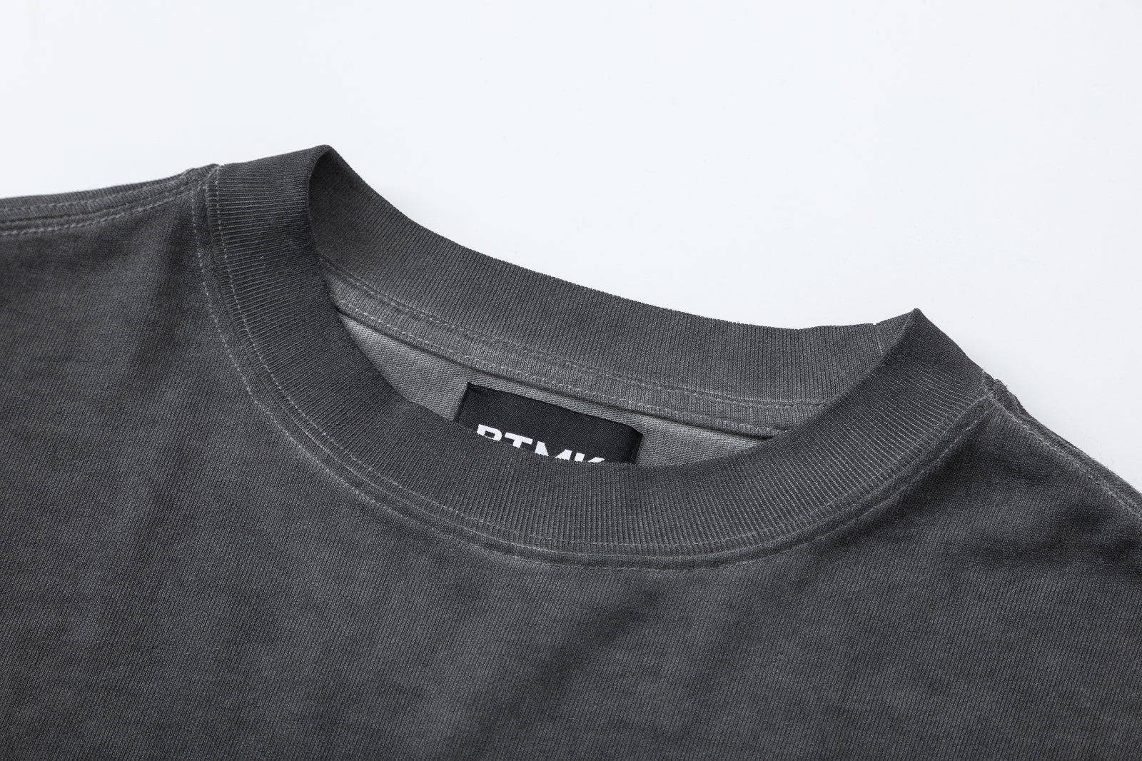 製品染めで色ムラを出し、エイジングの雰囲気が漂う風合いある半袖Tシャツです。