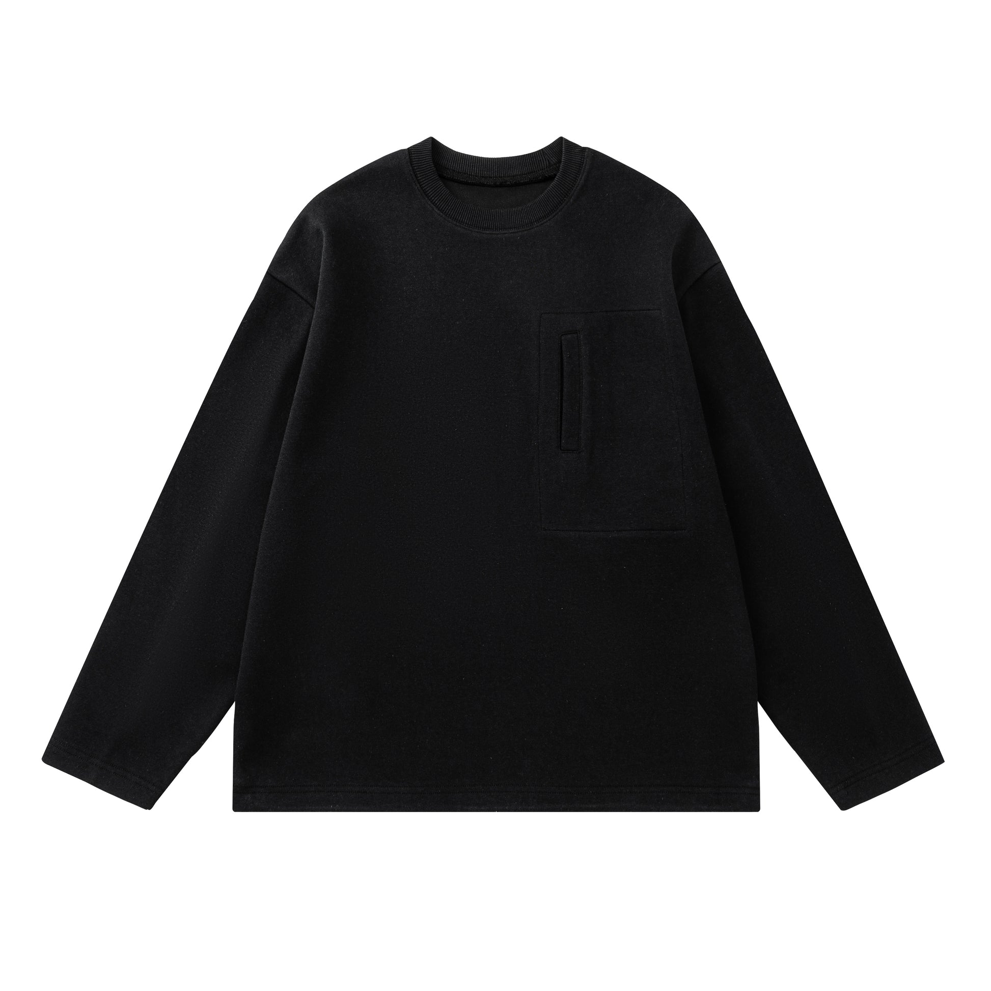 胸元のスクエアポケットとタックの入った立体的なスリーブが特徴的なスウェット。