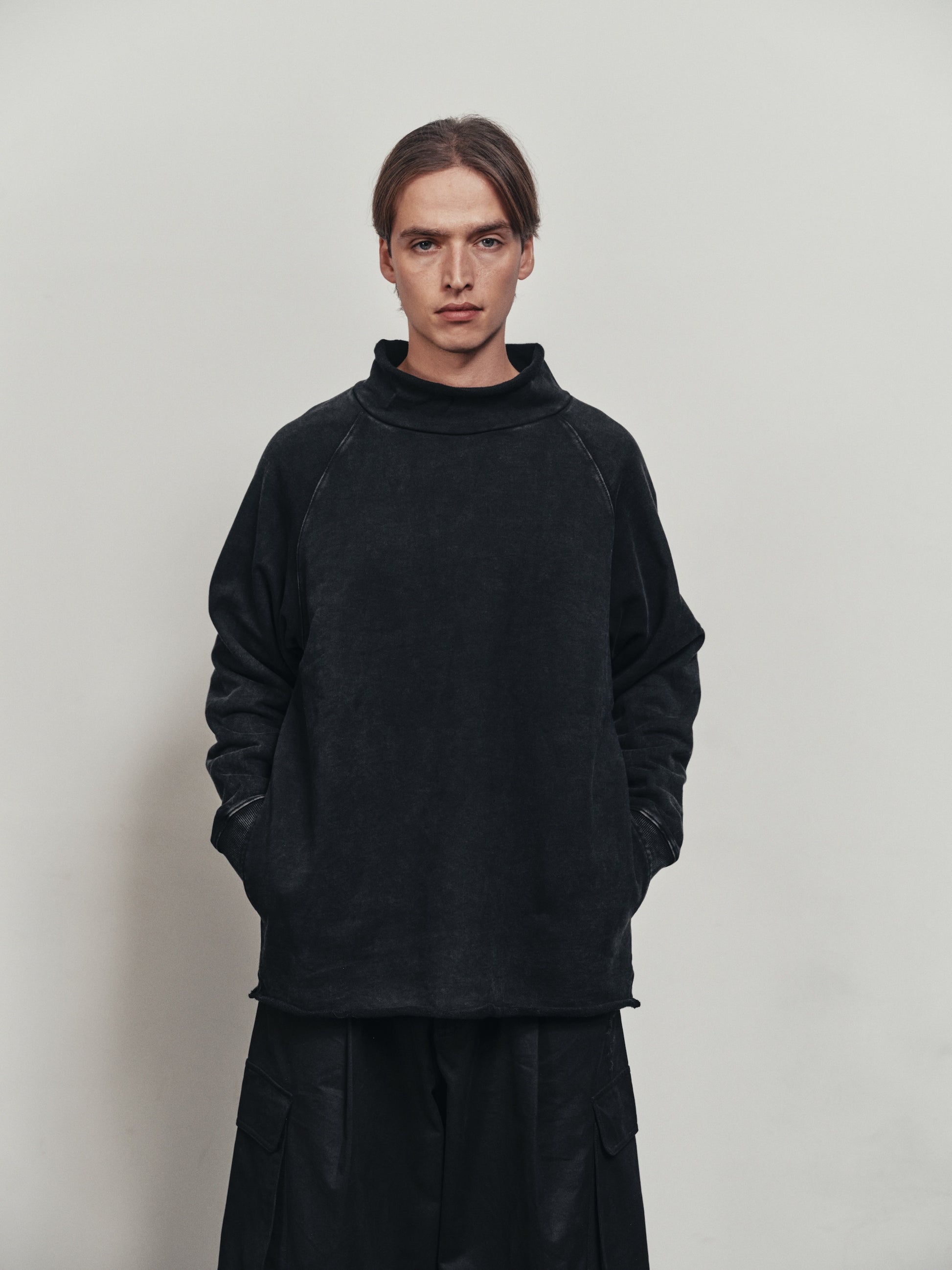 国産オーガニックコットン生地に微かなエイジング加工を施し、陰影のニュアンス感のあるロールネックスウェットです。